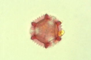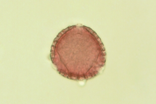 Jedoch das mikroskopische Bild des anderen Präparates scheint Senf zu sein. Aber ein Vergleich in der Pollendatenbank in Verbindung mit der hellgelben Farbe des Höschens, lässt uns eine blühende Ligusterhecke (Ligustrum sp.) im Umkreis des Sammelgebietes unserer Bienen vermuten.